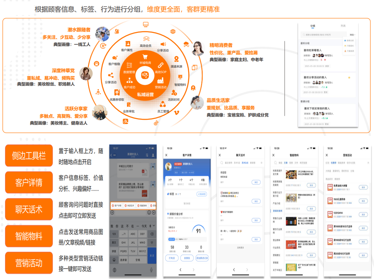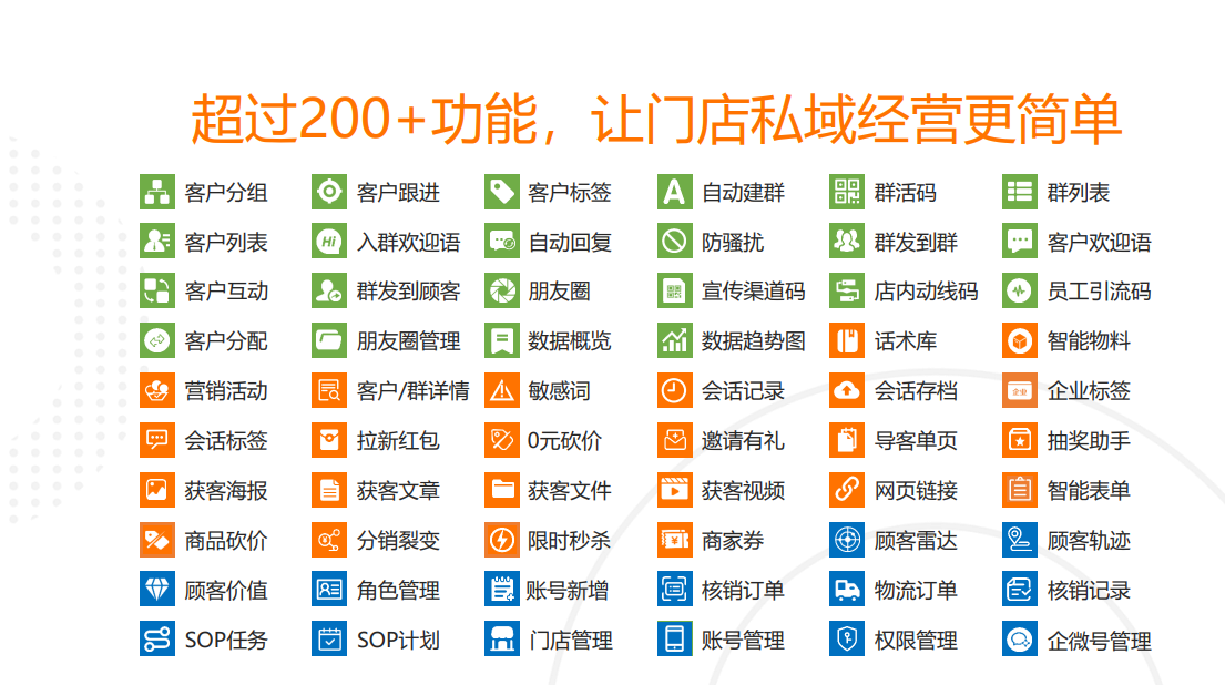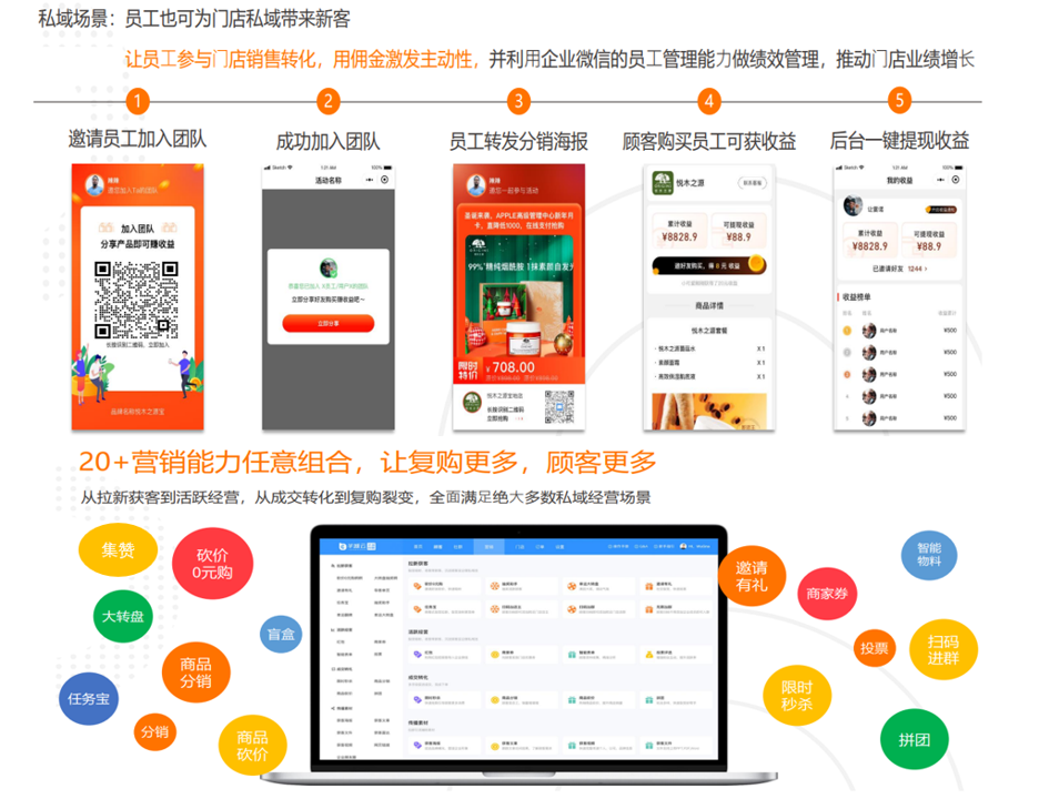 从拉新获客到活跃经营,从成交转化到复购裂变,全⾯满⾜绝⼤多数私域经营场景。